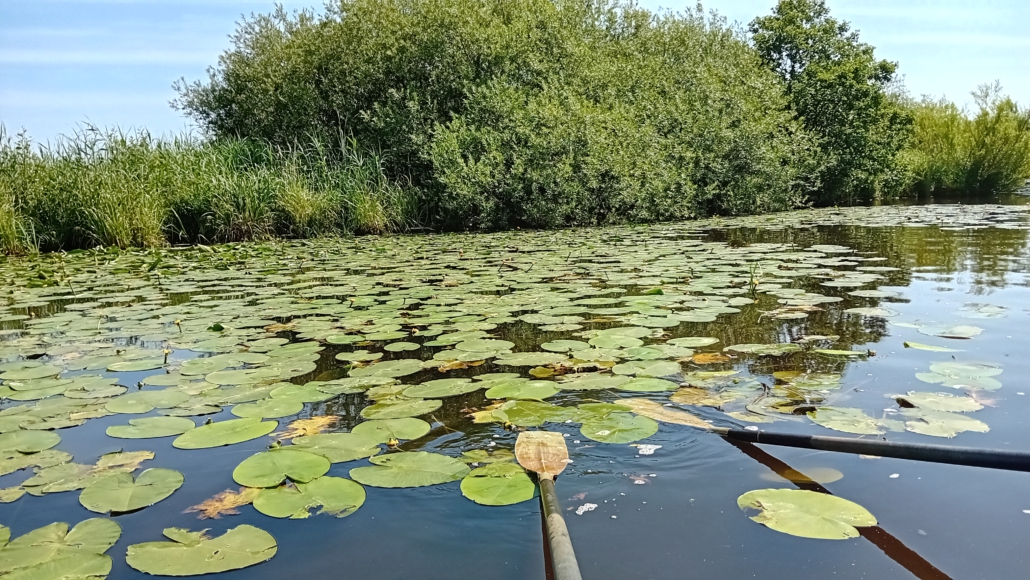 Am Samstag ruderten wir von Vegesack auf Lesum und Hamme zurück zum Ruderverein Osterholz und danach weiter bis zur Schleuse Teufelsmoor. An diesem Vormittag hatten wir Flut auf der Lesum. Fast waagerecht war der Bootssteg in Vegesack. Wasser strömte in Richtung Binnenland. Ab Ritterhude hatten wir keine Gezeiten mehr. Nach einer Mittagsrast fuhren wir weiter bis zur Schleuse Teufelsmoor. 29 km ruderten wir an diesem sonnigen Tag. Seerosen und Schilf am Ufer verzauberten die Landschaft. Ein Genuss für die Augen. Einige nutzen die Rast am Ruderverein für ein kurzes Bad im moorigen Wasser der Hamme.
